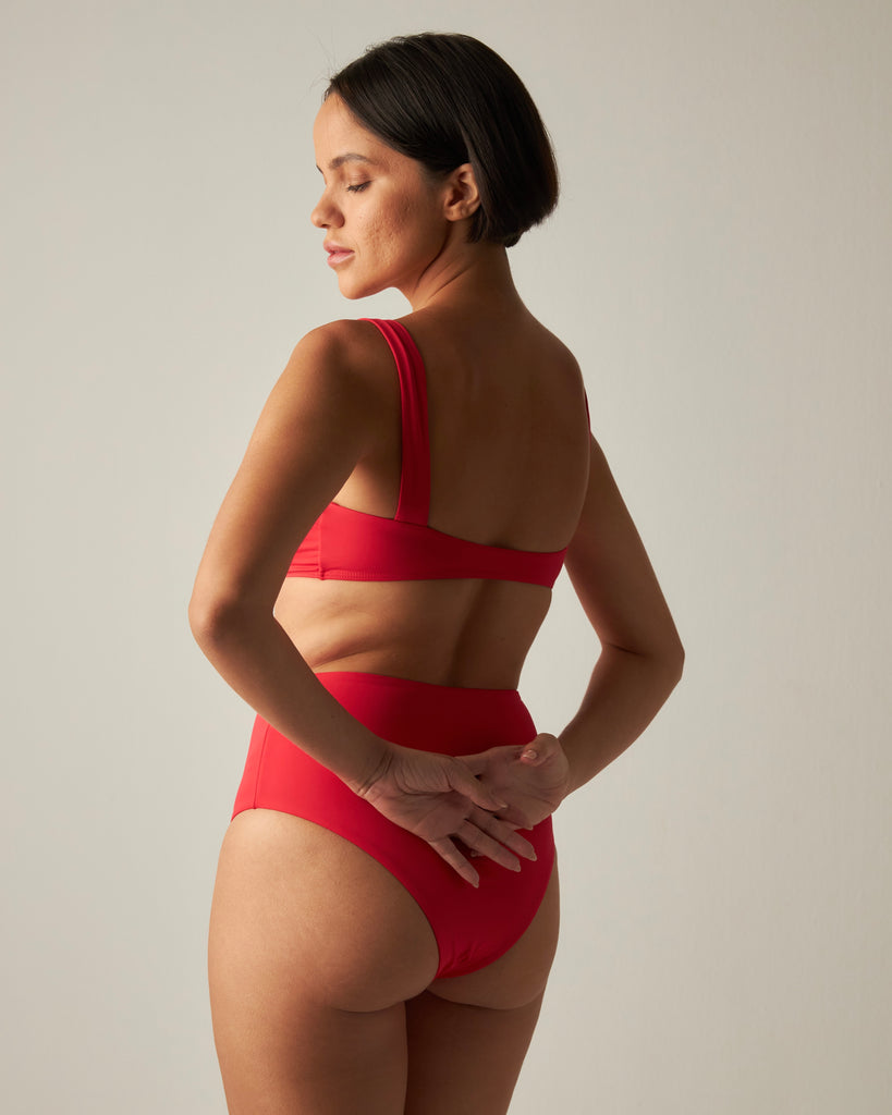 Confeccionado em poliamida biodegradável com fator de proteção solar 50+.